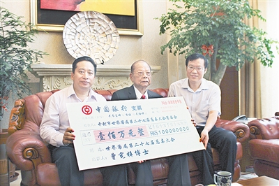 5月24日,曾憲梓博士捐贈100萬元港幣支持開封舉辦世界客屬第27屆懇親大會。