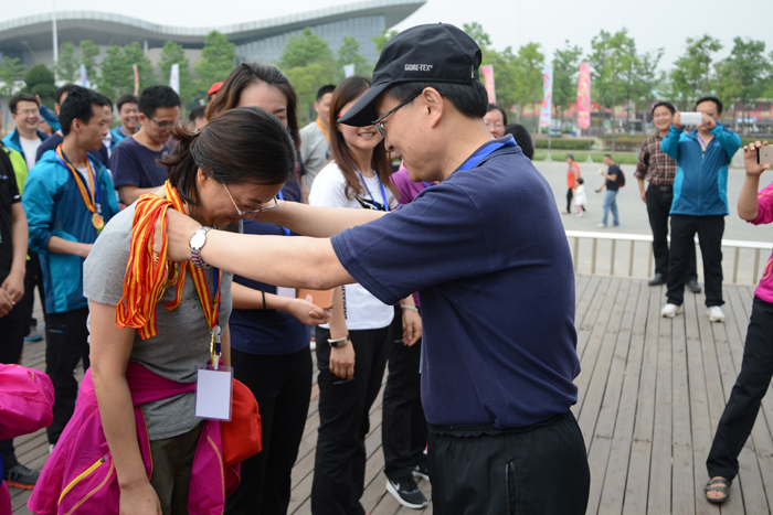 9點(diǎn)30分,健步走活動開始。40多分鐘后,60多名黨員干部一個不拉地走過終點(diǎn)。王耀等部領(lǐng)導(dǎo)分別給獲得男女前10名的同志頒獎。