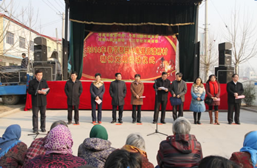 為促進(jìn)農(nóng)村精神文明建設(shè)和城鄉(xiāng)一體化發(fā)展,更好更快地提升公民文明素質(zhì)和社會(huì)文明程度, 2014年1月23日,省委宣傳部牽頭中原出版?zhèn)髅郊瘓F(tuán)、河南人民出版社、省九三學(xué)社等省直單位,冒著冬日嚴(yán)寒來(lái)到了中牟縣官渡鎮(zhèn)官渡橋村,開展幫扶慰問(wèn)活動(dòng),把溫暖和愛(ài)心送給農(nóng)民群眾。省委宣傳部機(jī)關(guān)干部十多人參加了慰問(wèn)活動(dòng)。